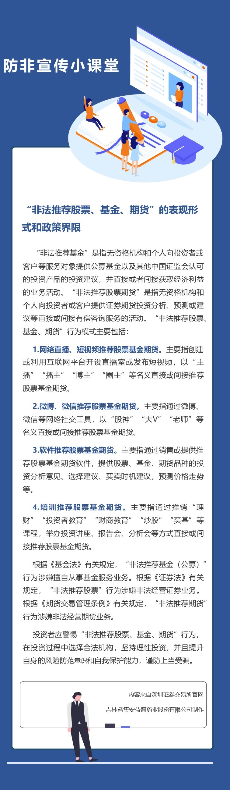 益盛藥業(yè)提示您:樹立正確理財(cái)觀念,提高風(fēng)險(xiǎn)意識(shí),防范非法集資,倡導(dǎo)理性投資,不盲目跟風(fēng)。依法行使權(quán)力和履行義務(wù),不參加非法證券和洗錢犯罪活動(dòng),提高自我保護(hù)能力,樹立正確投資理念。
