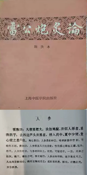 南北朝時(shí)期陶弘景所輯錄的《本草經(jīng)集注》是關(guān)于中國人參加工及其產(chǎn)品的最早文獻(xiàn)。書中明確記載了關(guān)于人參的采收時(shí)節(jié)與加工方法,“二月、四月、八月上旬采根,竹刀刮,暴干,無令見風(fēng)?!蹦媳背瘎⑺螘r(shí)期《雷公炮炙論》是我國醫(yī)藥史上最早的一部中藥炮制學(xué)專著,書中也記載了關(guān)于人參的加工方法,“凡使要肥大,塊如雞腿,并似人形者。采得陰干,去四邊蘆頭并黑者,銼入藥中?!笨磥?,以加工技術(shù)而論的話,在南北朝時(shí)期人參加工制品就已盛行,但制成品還僅僅是“生曬參”,而且加工方法五花八門。