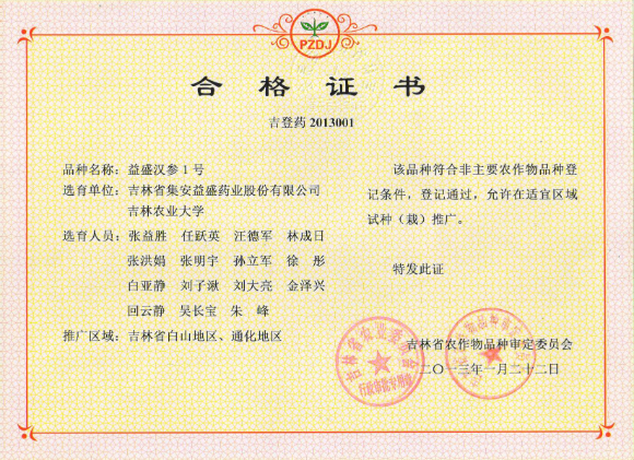 (吉林省農(nóng)作物品種審定委員會(huì)審定“益盛漢參1號(hào)”為農(nóng)作物新品種)