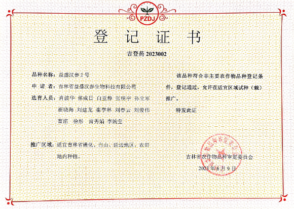 (吉林省農(nóng)作物品種審定委員會(huì)審定“益盛漢參2號(hào)”為農(nóng)作物新品種)