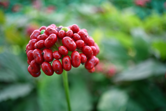 適宜的水分是漢參良好生長(zhǎng)的必要保證,水分過(guò)多過(guò)少都會(huì)影響漢參的發(fā)育。缺水時(shí)要及時(shí)進(jìn)行引灌噴淋;降雨增多時(shí)要防止雨水沖擊參床。益盛全程采用人工來(lái)管理排水系統(tǒng),根據(jù)雨量和土壤濕度,適時(shí)調(diào)節(jié)。在五至六月,為使養(yǎng)分更加優(yōu)化分配,要及時(shí)摘去花蕾,來(lái)促使?jié)h參根部積累更多有效成分。而在立秋前,留籽田就要進(jìn)行采果,為漢參的下一代留存種果。