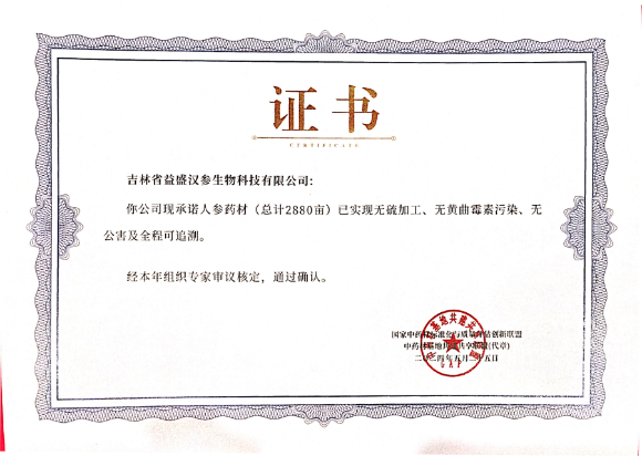 (漢參獲得有機認證)