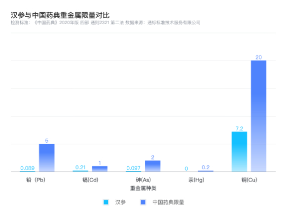(漢參重金屬含量與中國藥典限量標準對比)